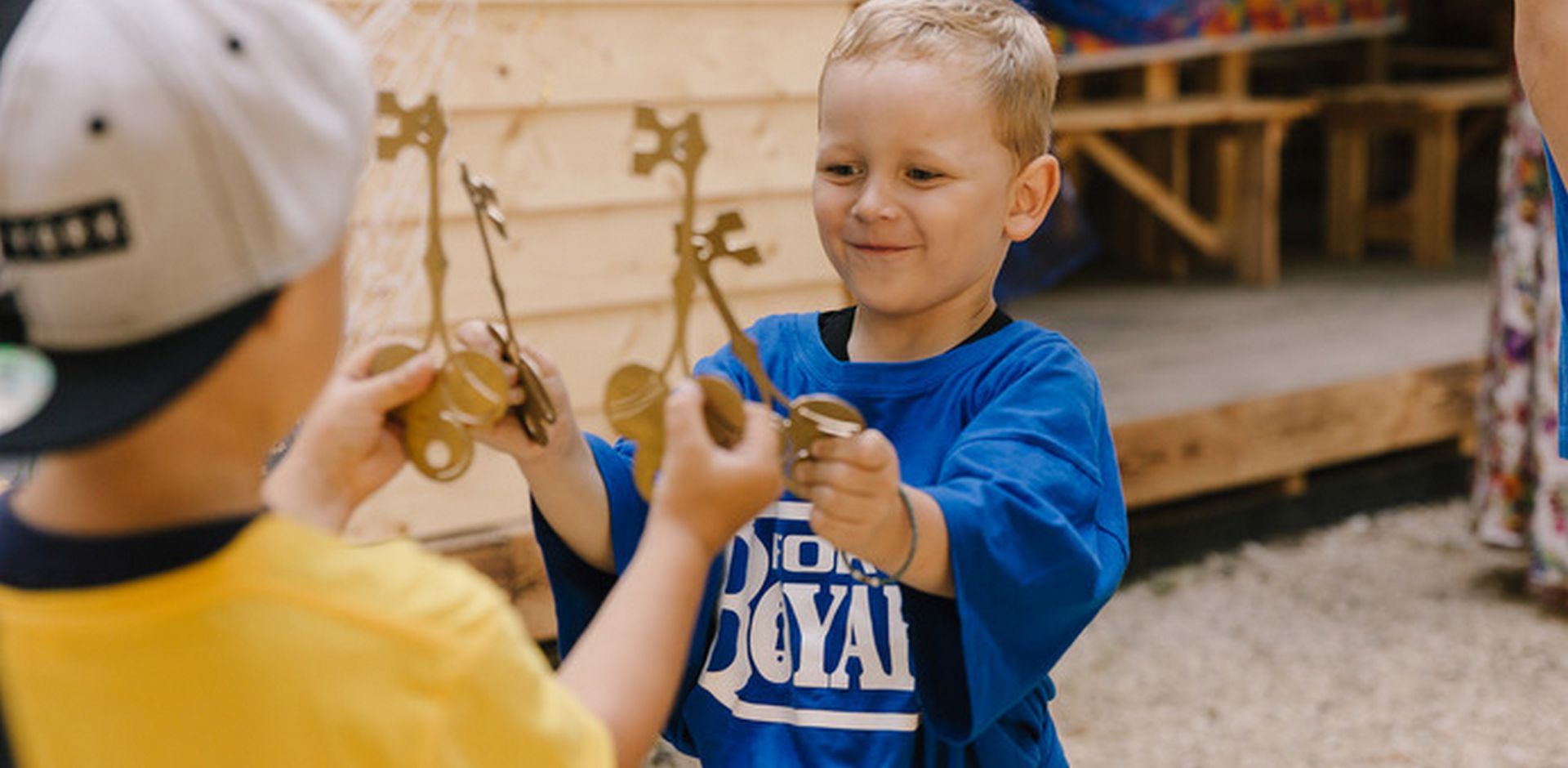Ребята надевают экипировку, готовятся в бой. Квест состоит из заданий, которые нужно пройти, за каждое из которых дети получают четырехзначный циферный код от ящиков с ключами. Задача собрать как можно больше ключей и обменять их на главный ключ от хранилища с золотом.