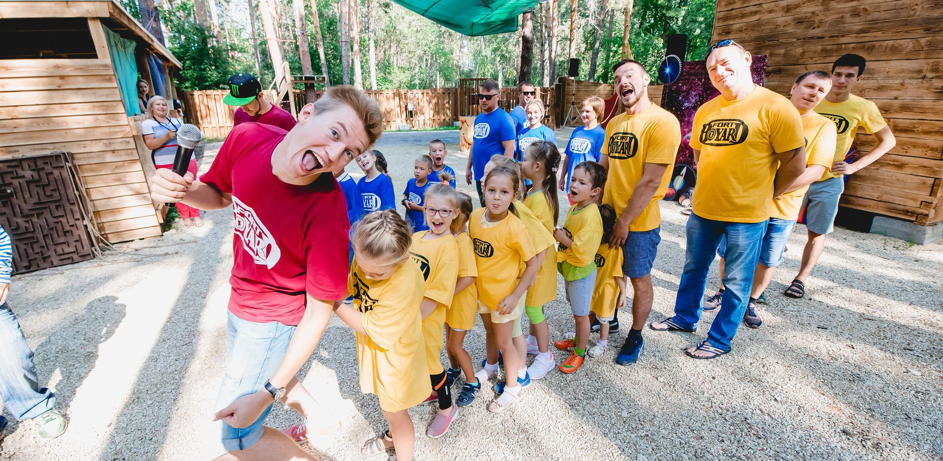 Взрослые проходят в банкетную зону. Детей встречает ведущий и участники попадают на Форт Боярд, где их ожидают очень страшные, опасные, командные и самое главное - эмоциональные испытания.